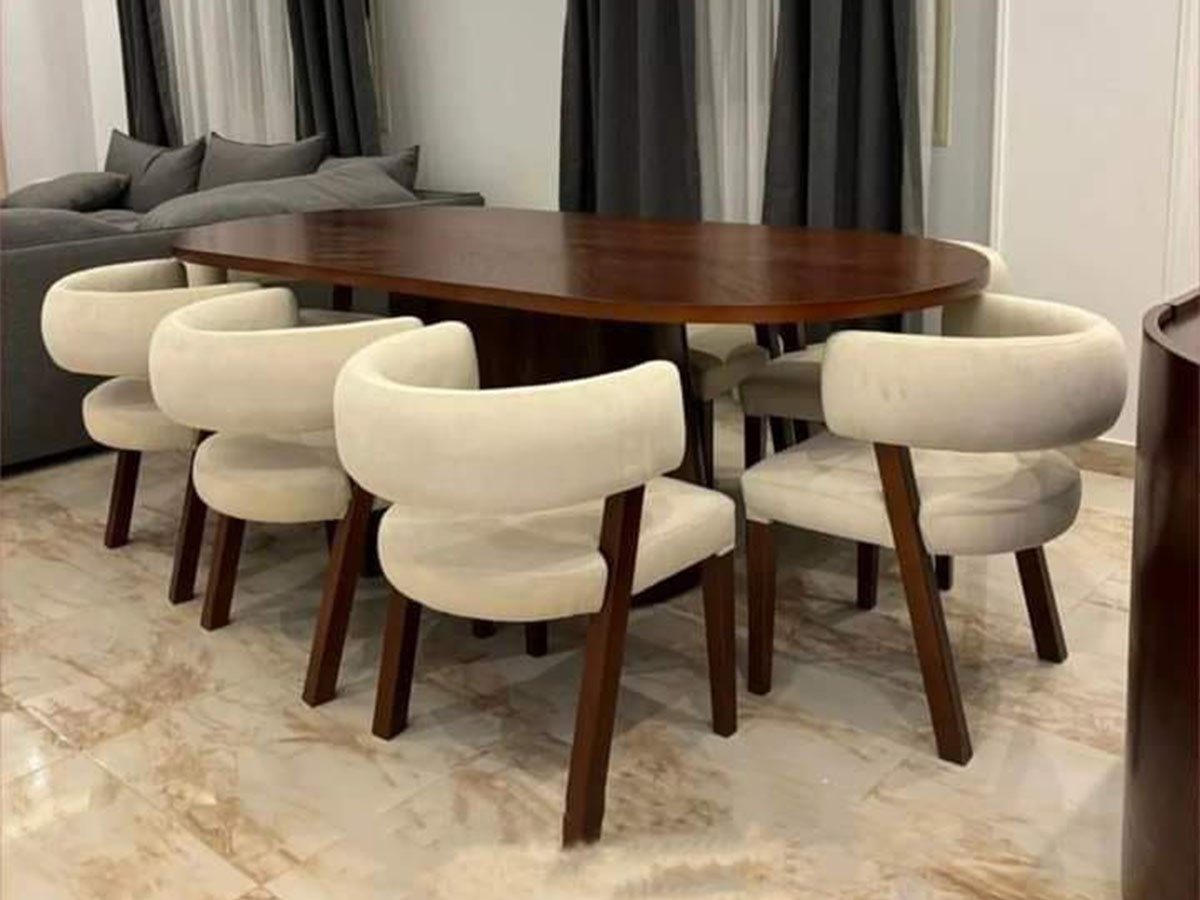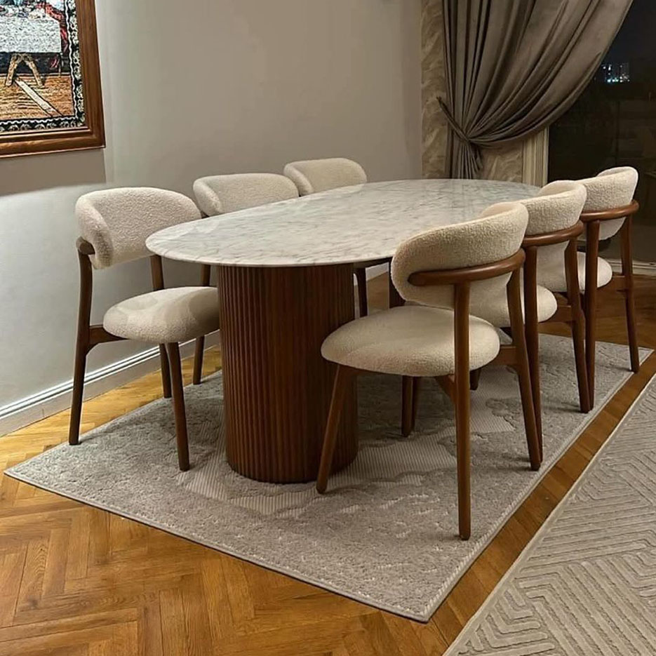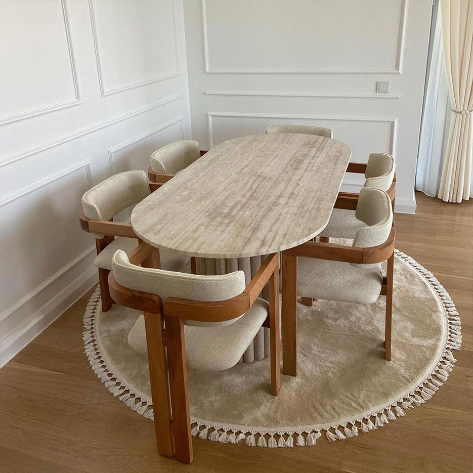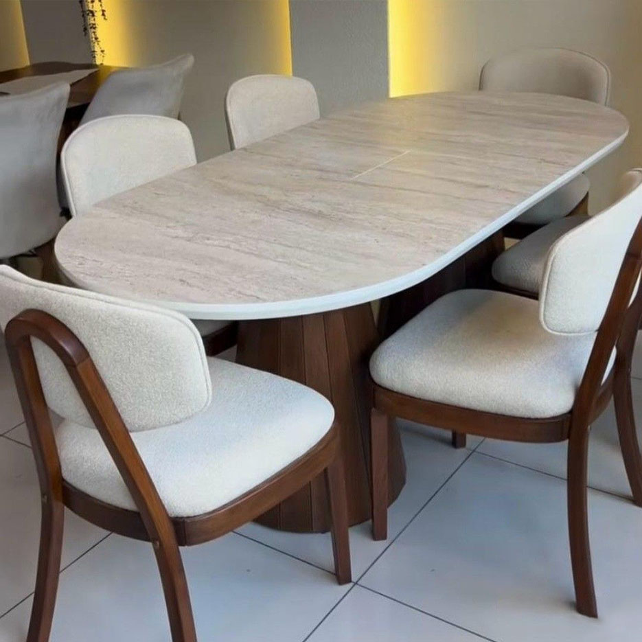 طاولة مودرن بألوان خشبية متناسقة وتفاصيل ناعمة تجمع بين الأصالة والرُقيّ ومساحة تنبض بالفن والهيبة في آن