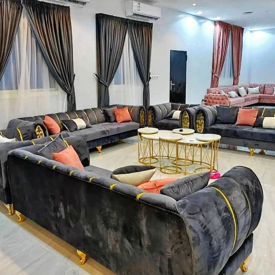 مصممة لغرف المعيشة الكبيرة، بخامات مقاومة للاتساخ وسهلة التنظيف دائماً.